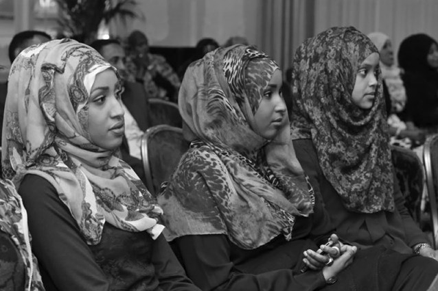 Собрание лондонской общины выходцев из Сомали. Молодые женщины встречаются с президентом Республики Сомали Хасаном Шейхом Махмудом. 2013. Май. Фото: Voice of America. Фотография публикуется по лицензии Creative Commons
