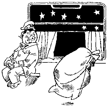 И через несколько минут Солнышкин, согнувшись в собственном мешке, въезжал на матросской спине в двери вагона.