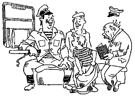 Проводник подошёл к морякам отдать билеты и сказал: