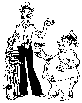 — Туда! — показал весёлыми глазами Васька вниз, на ресторан «Золотой кит», — Солнышкин хочет угостить старых моряков! Так ведь я говорю, Солнышкин? — Он тут же спохватился: — Я не представил тебе моего друга. Знакомься, Солнышкин, это лучший матрос парохода «Даёшь!».