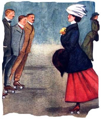 После 1910 г. в Москве появились еще два вида новых зрелищ. Одно для буржуазии — скетинг-ринки, т. е. катки для роликовых коньков. В продаже появились роликовые коньки заграничного производства и вскоре скетинг-ринки превратились в место примитивного спорта, развлекательного зрелища и место знакомств с женщинами того типа, которые всегда появляются там, где скапливается развлекающаяся публика.