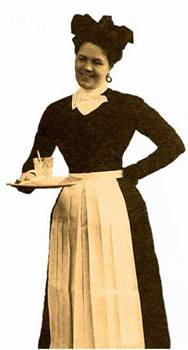 В простых купеческих семьях, у лавочников и ремесленников прислуга, подчас не уступавшая в своем развитии хозяевам, могла садиться в комнатах и даже обедать за общим столом со всей семьей. Во всех других домах она обедала на кухне и в комнатах, никогда в присутствии хозяев не садилась. Исключения могли быть только для старых нянь, давно живущих в доме, и для гувернанток, имевших образование.