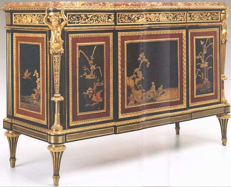 Одно перечисление материалов, которые были затрачены на исполнение этого комода, говорит о высочайшем качестве и ранге экспоната. Он был создан знаменитыми мебельщиками второй половины XVIII века из мастерской Адама Вайсвайлера. Интересно, что в 2011 подобный комод этого же изготовителя продали за 7 миллионов долларов, он стал самым дорогим предметом мебели за всю историю европейского искусства.