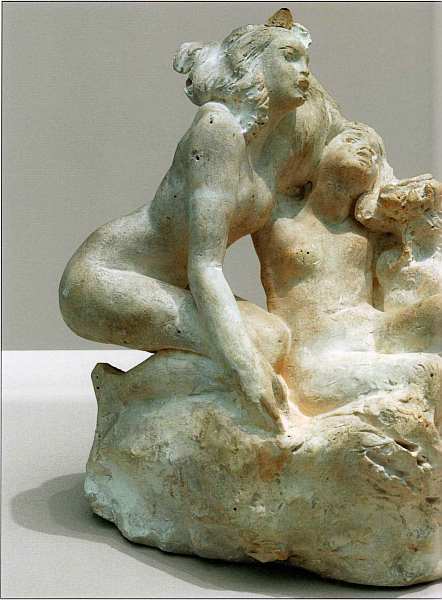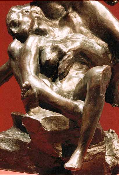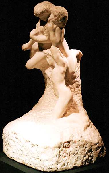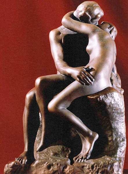 У скульптуры «Поцелуй» существует множество вариантов в позах и ракурсах, набросков в разных материалах, разной степени готовности. Одним из приемов является метафора открытости и закрытости. На предыдущей иллюстрации — изваяние, в котором пара замкнулась в объятиях, она отгорожена ото всех и наслаждается уединением.