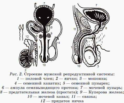 Основные органы репродуктивной системы мужчины – яички, придатки яичек и семявыносящие протоки (рис. 2).