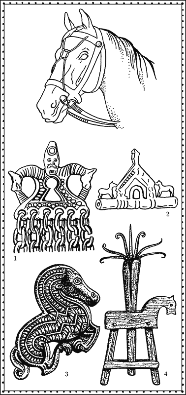 Столь же часто Боги выражали свою волю через посредство священных животных, причём едва ли не чаще всего этим животным был конь. Подробнее о мифологическом смысле, который древние люди придавали коню, говорится в главе «Обереги». Здесь лишь заметим, что культ коня был свойствен как славянам (восточным и западным), так и многим их соседям – финно-уграм, балтам, германцам. Все эти народы (исторически довольно поздно освоившие верховую езду, в особенности конный бой) считали коня тесно связанным со светлыми, солнечными Богами: благородное