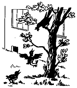 Тут около Андулки уселся и Еничек. Оба широко открывали клювы и ждали, что их мама, наконец, накормит. Но мама их не накормила. Она перепрыгнула на ветку выше. Они за ней. И снова открыли клювы. А дроздиха с червяком — ещё выше. Они снова за ней.