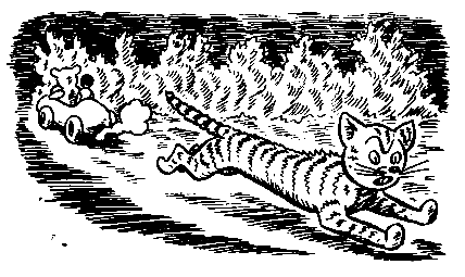 — Кто это? Мышь? Большая мышь? Жирная мышь? Сейчас я её поймаю! — И кот приготовился сзади прыгнуть на машину.