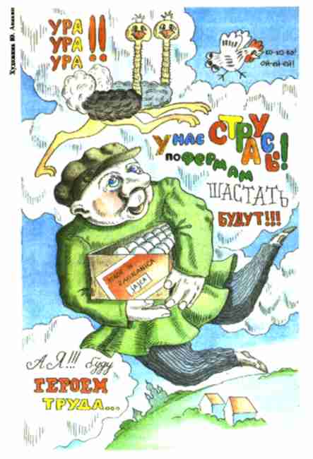 — Заграница, — говорил Александр Семенович, выкладывая яйца на деревянный стол, — разве это наши мужицкие яйца… Все, вероятно, брамапутры, черт их возьми! Немецкие… Только не понимаю, чего они грязные, — говорил задумчиво Александр Семенович… — Маня, ты присматривай. Пускай дальше выгружают, а я иду на телефон.