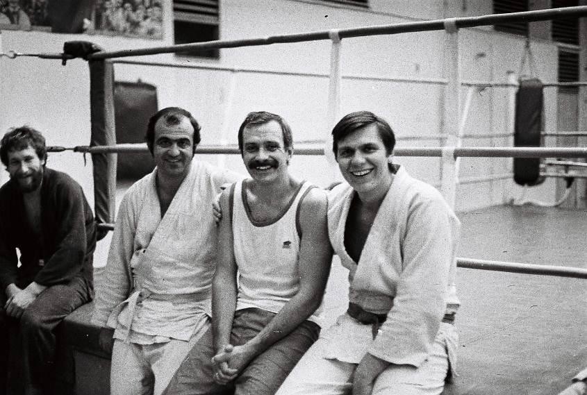 А. Шехтель, Н. Михалков и Н. Ващилин в спортзале ЛГИТМиК, 1981