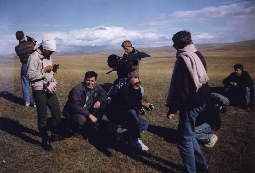 Николай Ващилин и Никита Михалков на съёмочной площадке французского фильма «Урга». Китай, Маньчжурия. 1990
