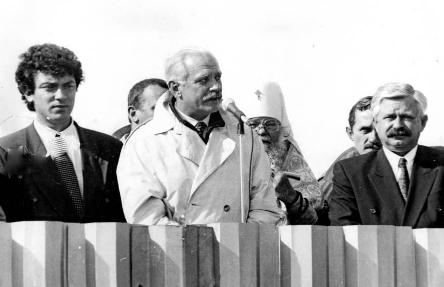 Борис Немцов, Никита Михалков и Александр Руцкой на демонстрации в Нижнем Новгороде. 1993