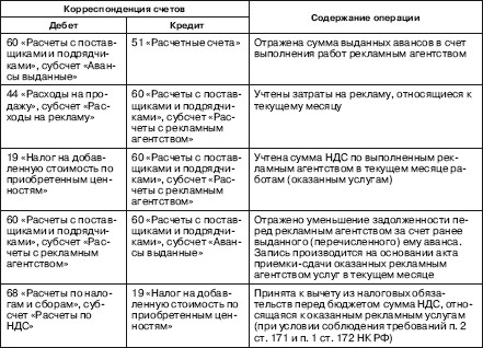 Если договором, заключенным с рекламным агентством, предусмотрено перечисление авансовых платежей, то в бухгалтерском учете организации-рекламодателя будут сделаны следующие записи: