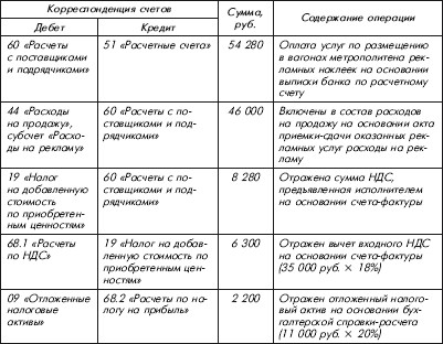 Учитывая изложенное выше, сверхнормативная сумма рекламных расходов (11 000 руб.) признается вычитаемой временной разницей и приводит к образованию отложенного налогового актива согласно п. 11 и 14 ПБУ 18/02.