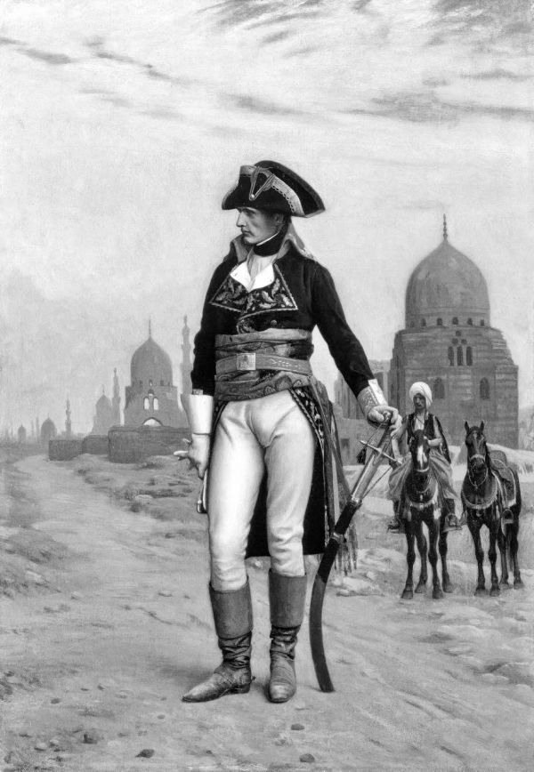 Вечером, 2 июля 1798 года, войска Наполеона начали высадку на Египетском берегу. Происходило это около Александрии, и уже на следующий день город был захвачен. Потом армия двинулась через пески на Каир. Во время этого марша солдаты и офицеры страдали от отсутствия воды: население деревень в панике покидало свои дома и, убегая, бросало отраву в колодцы. Воины-мамлюки медленно отступали, периодически беспокоя французов, а затем на своих великолепных лошадях скрываясь от погони.