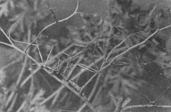 Палочники, о которых мы уже говорили как о ловких подражателях, необычайно похожи на различные части растений. Особенного совершенства достигли представители семейства Phyllidae. Внешнее сходство их надкрылий и передних ног с листьями представляет замечательное явление природы. В некоторых местностях, где встречаются палочники, у местного населения существует даже поверье, что эти насекомые происходят от листьев и почек деревьев.