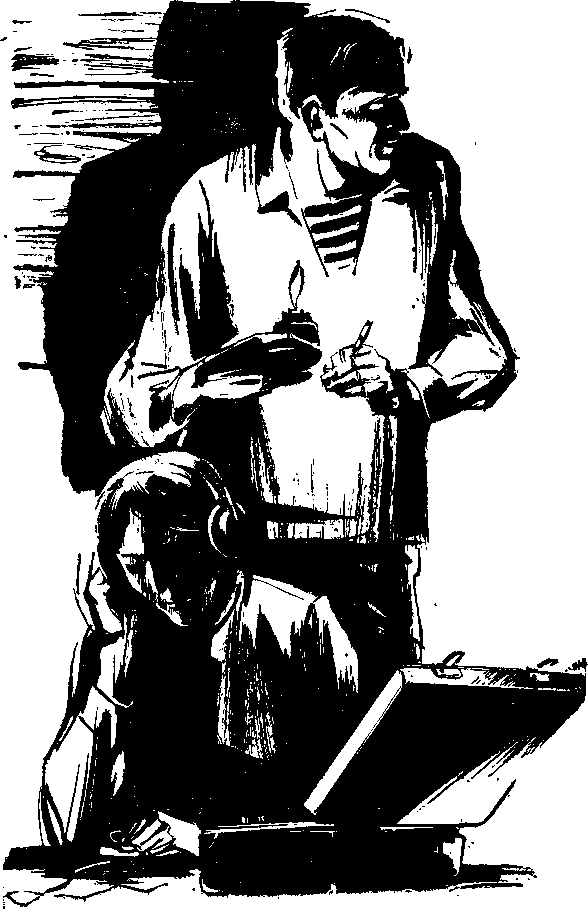 «Пропал сюрприз!» — подумал Ромка и, схватив кастрюлю, юркнул с ней в старый гардероб со сломанными дверцами. Потом, спохватившись, высунулся и задул коптилку.
