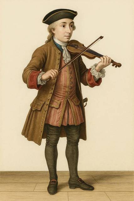 — Всегда рад встретить маэстро, но простите великодушно, служба скоро закончится, а мне семью кормить, — со всем видимым радушием отвечает скрипач, опасаясь видно больше не за свой заработок, а за скрипку.