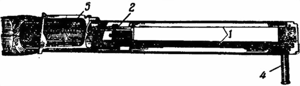 — с правой стороны — продольный вырез с отверстием для рукоятки перезаряжания; вырез закрывается щитком, предотвращающим попадание пыли в ствольную коробку.