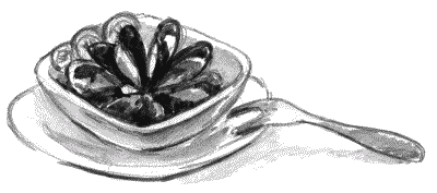 К мидиям, как и к другим блюдам, которые едят руками, подается вазочка с чистой водой. Можно также использовать влажные салфетки.