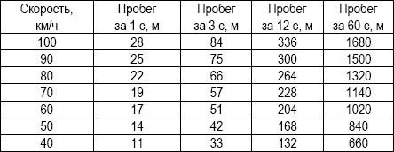 Держи дистанцию в 3–4 секунды пробега – она обеспечит в нормальную погоду достаточно времени для торможения, это резерв времени на реакцию.