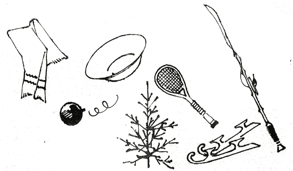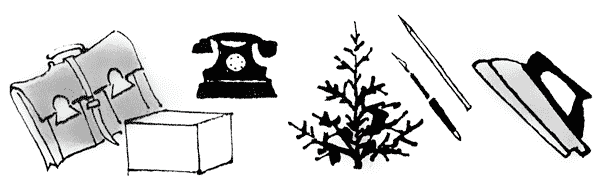 Если ты правильно назовёшь каждый предмет, нарисованный здесь художником, а затем сложишь первые буквы, этих слов, то узнаешь, какие отметки получили герои этого маленького рассказа.
