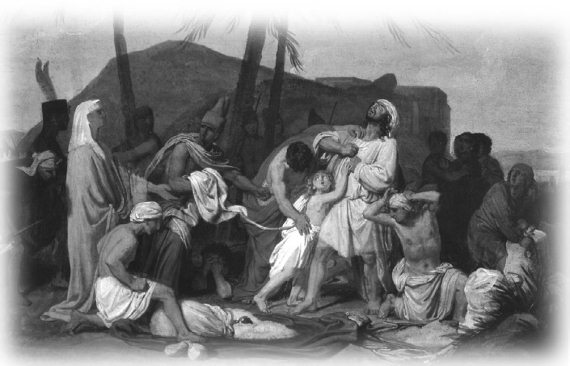 Тут Иосиф не мог более удерживаться и, выслав от себя всех египтян, залился слезами и воскликнул: «Я – Иосиф! Жив ли еще отец мой?» Но братья так были смущены, что не могли ответить ему ни слова. «Подойдите ко мне», – сказал Иосиф. Они подошли. «Я – Иосиф, брат ваш, которого вы продали в Египет, – сказал он им. Но не печальтесь о том, не вы послали меня сюда. Бог послал меня для сохранения нашей жизни, потому что еще пять лет продолжится голод. Идите к отцу моему и скорее приведите его сюда. Скажите ему, что сын его, Иосиф, которого Бог поставил над всем Египтом, зовет его к себе со всем семейством и имуществом и отведет ему прекрасную землю». И целовал Иосиф Вениамина и всех братьев и, обнимая их, плакал. Тогда и братья начали мало-помалу говорить с ним. В радости Иосифа принял участие фараон, повелел от своего имени пригласить Иакова со всем семейством в Египет и послал за ним колесницы.