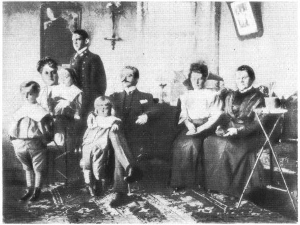 Семья будущего создателя самолетов. Володя Мясищев первый слева. Рядом его мать Янина Евгеньевна и отец Михаил Михайлович с младшими братьями Володи Юрием и Евгением. На снимке также родственники по линии отца