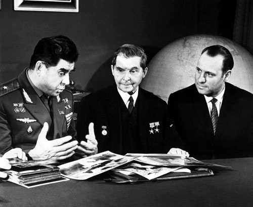 Дважды Герой Советского Союза летчик-космонавт Г.Т. Береговой, С.В. Ильюшин и Г.В. Новожилов