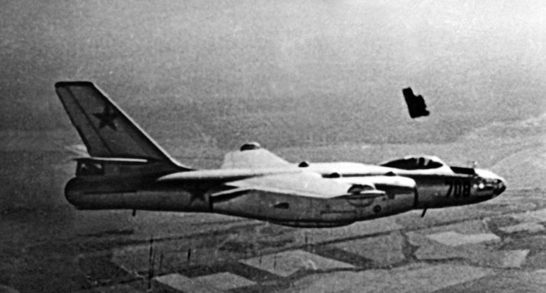 Испытание системы аварийного покидания штурмана с самолета Ил-28