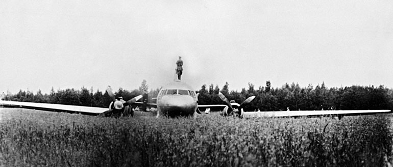 Что делать? Не садиться же в международном аэропорту, хотя и дружественной страны, вдруг что не так. Разрядил ситуацию руководитель ленинградской диспетчерской службы, получивший указание при наличии достаточного запаса горючего направить аварийную машину в аэропорт Таллина. В 13 часов 28 минут самолет благополучно сел на грунтовую ВПП с убранным шасси.