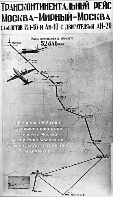 Первыми командирами гражданских Ил-18 были пилоты В.И. Вергун, Е.К. Каминский, Микулик и Пысин. Для передового летного подразделения ГВФ эксплуатационные испытания лайнера во внерейсовых полетах были и почетным, и нелегким делом. В марте 1958 года Ил-18 совершил дальний перелет по маршруту Москва – Иркутск – Петропавловск-Камчатский – бухта Тикси – Москва. Расстояние протяженностью около 18 000 км было успешно преодолено за 27 часов 34 минуты. Полеты несколько раз прерывали, дорабатывая машину с учетом рекомендаций эипажей Внуковского авиапредприятия. Ведь перед всеми стояла задача как можно быстрее вывести лайнер на авиалинии. Но события развивались не по написанному сценарию.
