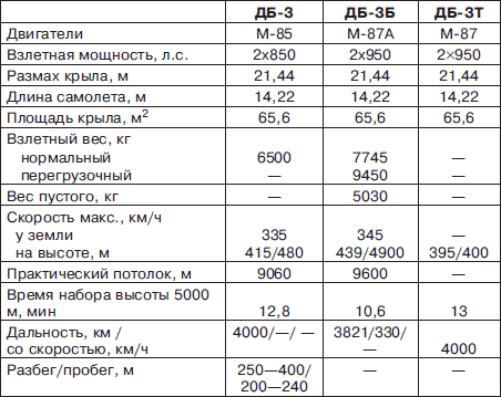 Основные данные самолетов Ил-4 (ДБ-3Ф)
