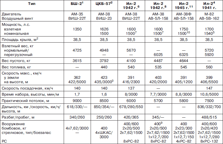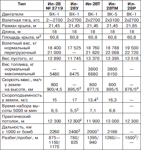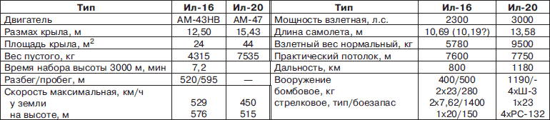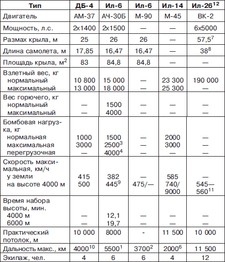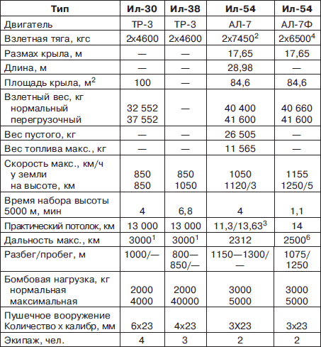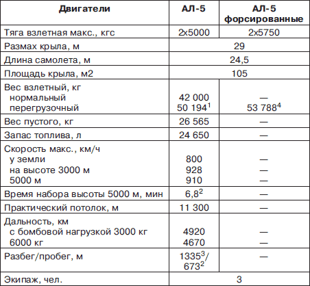 Основные расчетные данные последних бомбардировщиков Ильюшина с поршневыми двигателями
