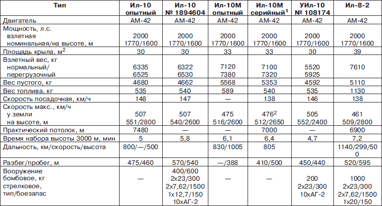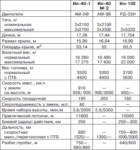 Основные данные реактивных штурмовиков ОКБ Ильюшина