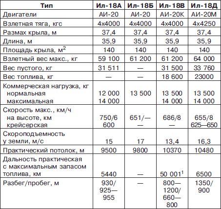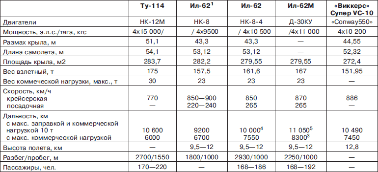 Основные данные дальнемагистральных пассажирских самолетов середины 1960-х годов