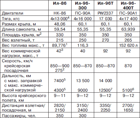 Основные данные широкофюзеляжных пассажирских и грузовых самолетов