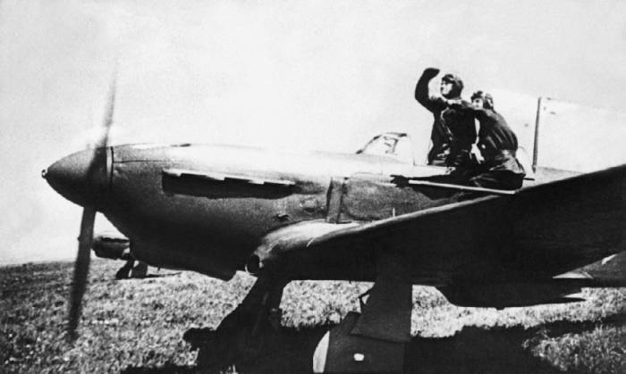 Летчик-испытатель Леонид Расторгуев в кабине самолета Як-3 с мотором М-105ПФ-2