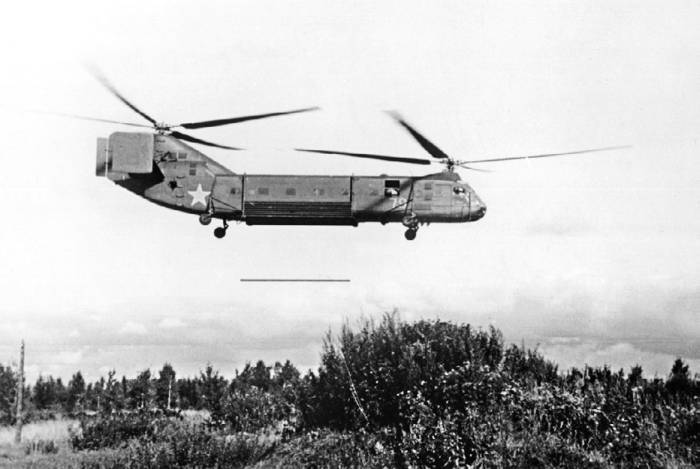 Тем не менее в Советском Союзе интерес к продольной схеме вертолета не пропал. Достаточно сказать, что при создании гиганта В-12 в ОКБ М. Л. Миля рассматривался его вариант в виде «летающего вагона». С целью дальнейшего изучения продольной схемы даже пробрели в США на фирме «Вертол» один экземпляр геликоптера V-44.