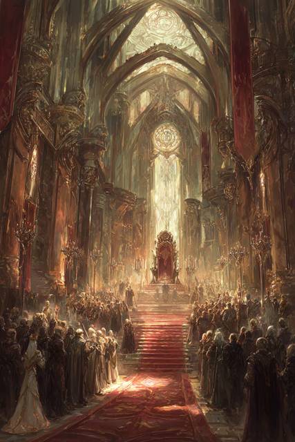 Посередине зала лежал красный ковер, который вел прямо к располагавшемуся вдалеке помпезному трону, но, несмотря на огромное количество собравшихся на церемонию людей, никто не смел на него наступать. С учетом же яркого солнечного света, лившегося через множество витражных окон, это место являлось полной противоположностью стылой тьме Подгорода. Прямо-таки другой мир. Совершенно.