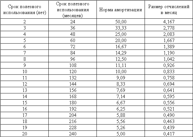 Нормы амортизации объектов нематериальных активов при применении линейного метода