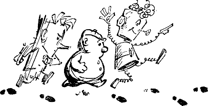 Правда, считать игрушечные мальчики умели только от двух до пяти, потому что меньше «двойки» и больше «пятерки» в этой школе никому не ставили. Зато они отлично знали, как устроена рогатка, отчего в дневниках вместо «двоек» бывают дырки и почему в арифметические задачки, туда, где стоит решение, попадают самые разлапистые и хвостатые кляксы. Все это они знали потому, что у ребят от них никаких секретов не было. Уж кто-кто, а игрушечные мальчики умели держать язык за зубами.