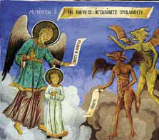 Как и подобало «образованному» человеку конца XIX века, я под названием этим разумел дурные склонности, страсти в человеке, почему и само это слово имело у меня значение не имени, а термина, определявшего известное понятие. И вдруг это «известное определенное понятие» предстало мне живым!.. Окружив нас со всех сторон, бесы с криком и гамом требовали, чтобы меня отдали им, они старались как-нибудь схватить меня и вырвать из рук Ангелов, но, очевидно, не смели этого сделать. Среди их невообразимого и столь же отвратительного для слуха, как сами они были для зрения, воя и гама я улавливал иногда слова и целые фразы.