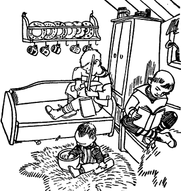Но когда Самуэль Август подрос и братья стали громко окликать его по имени, то звучало это просто как «Саммэльагуст». А было у него четверо братьев. Видели бы вы избушку, в которой они жили! В ней помещались всего лишь одна комната и кухня. И когда все мальчишки сидели дома, в избушке стоял несусветный гвалт. В комнате находился большой очаг, возле которого братья грелись в зимние вечера.