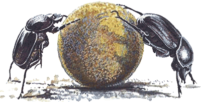 Древние египтяне возвели навозного жука в священный ранг, поклонялись ему как божеству. Из камня вырезали его изображения и, положив его на сердце умершему, хоронили вместе с мумиями. Полагают, что обожествление навозного жука произошло вот как: символ движения солнца по небу усмотрели египтяне в катании жуком шаров.