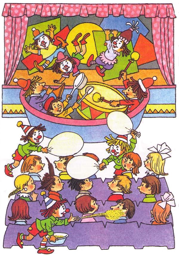 Конечно, никакой актер, находясь среди публики, не мог вертеться с такой скоростью, чтоб всем было видно его лицо. Получилось так, что одним было видно только лицо актера, а другим – только затылок. С декорациями тоже получалась какая-то чепуха. Одни зрители видели актеров в декорации, другие не видели ни того, ни другого, так как декорации были повернуты к ним обратной стороной и заслоняли актеров. Чтобы никто не скучал при виде такого неинтересного зрелища, режиссер Штучкин велел нескольким актерам бегать во время представления по залу, обсыпать зрителей разноцветными опилками, бить их по головам хлопушками и надутыми воздухом пузырями.