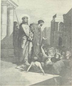 И снова Пилат спрашивал Иисуса, и снова тот молчал или говорил в ответ: «Ты говоришь». Лишь однажды в ответ на слова о царстве Иудейском он сказал, что его царство не Иудейское и не земное, а небесное. Этот ответ, как бы снимавший в глазах Пилата вину с Иисуса за притязания на царствование в Иудее, еще больше убедил прокуратора в невиновности стоящего перед ним «преступника».
