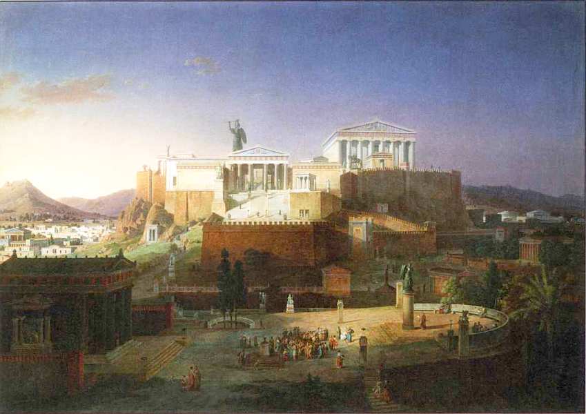 Автор данной картины, немец Лео фон Кленце, известен, в первую очередь, как архитектор-неоклассицист, основатель стиля неогрек. Само его название говорит о том, что основой зодчества мастер считал величественную простоту греческих храмов. При покровительстве короля Баварии Людвига I он стремился превратить Мюнхен в «Новые Афины». Кленце построил в городе ряд репрезентативных ансамблей, в том числе здания мюнхенской Глиптотеки и Старой пинакотеки. В этих сооружениях видно сильнейшее влияние древнегреческой архитектуры и подражание ей.