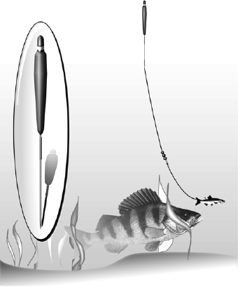Рис. 62. Оснастка при ловле окуня на живца поплавочной удочкой