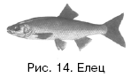 Елец, как и плотва, относится к наиболее известным рыбам отечественных водоемов. По внешнему виду он схож с голавлем и, возможно, с язем (рис. 14). Предпочитает свежую и чистую воду, поэтому его можно обнаружить в некрупных быстрых речках с чистой водой, после нормализации ее уровня. Стаи ельцов можно увидеть на течении над чистым песчаным дном, где рыба занимает места за неровностями дна, песчаными косами. В поисках пищи часто поднимается к поверхности воды.